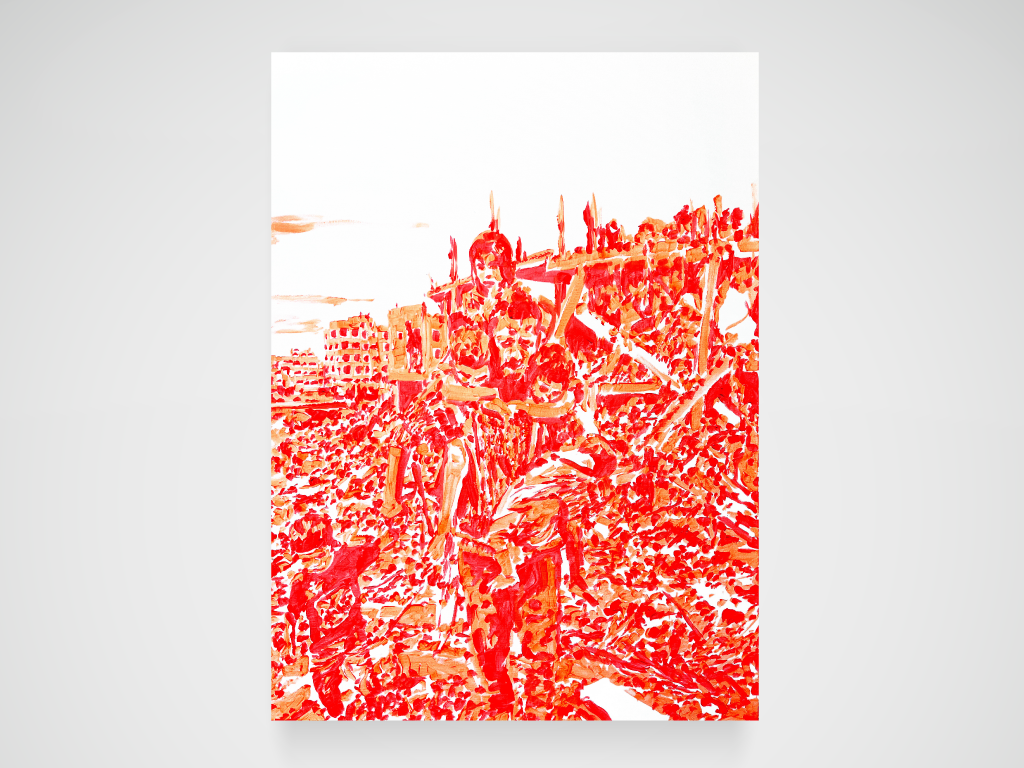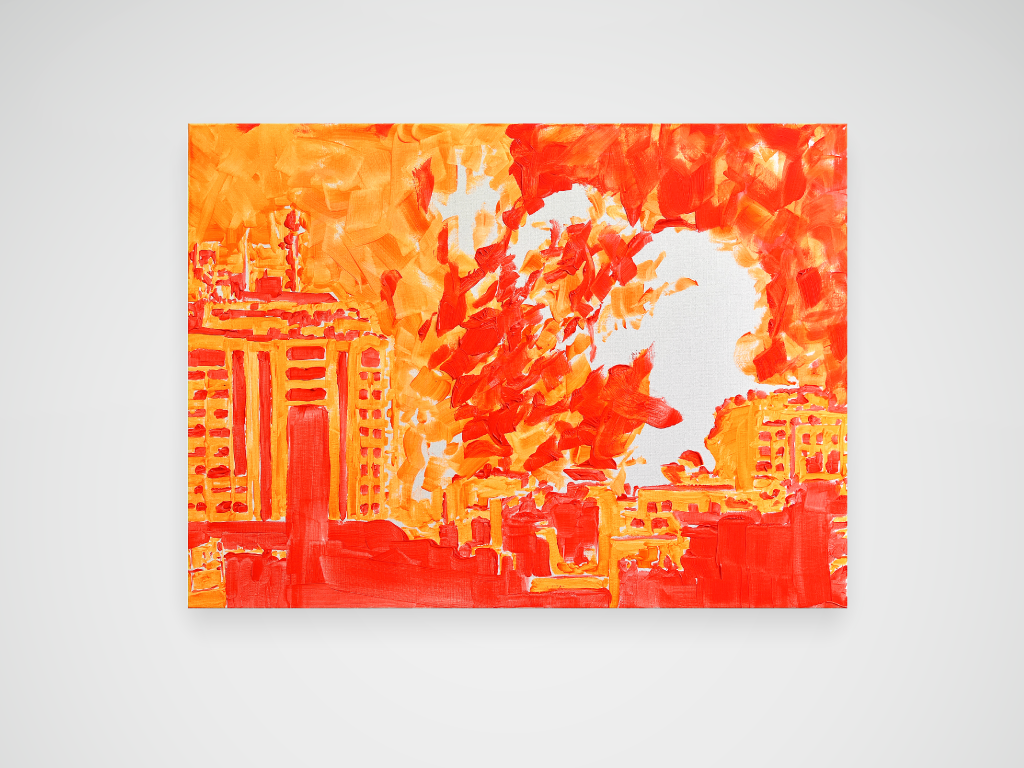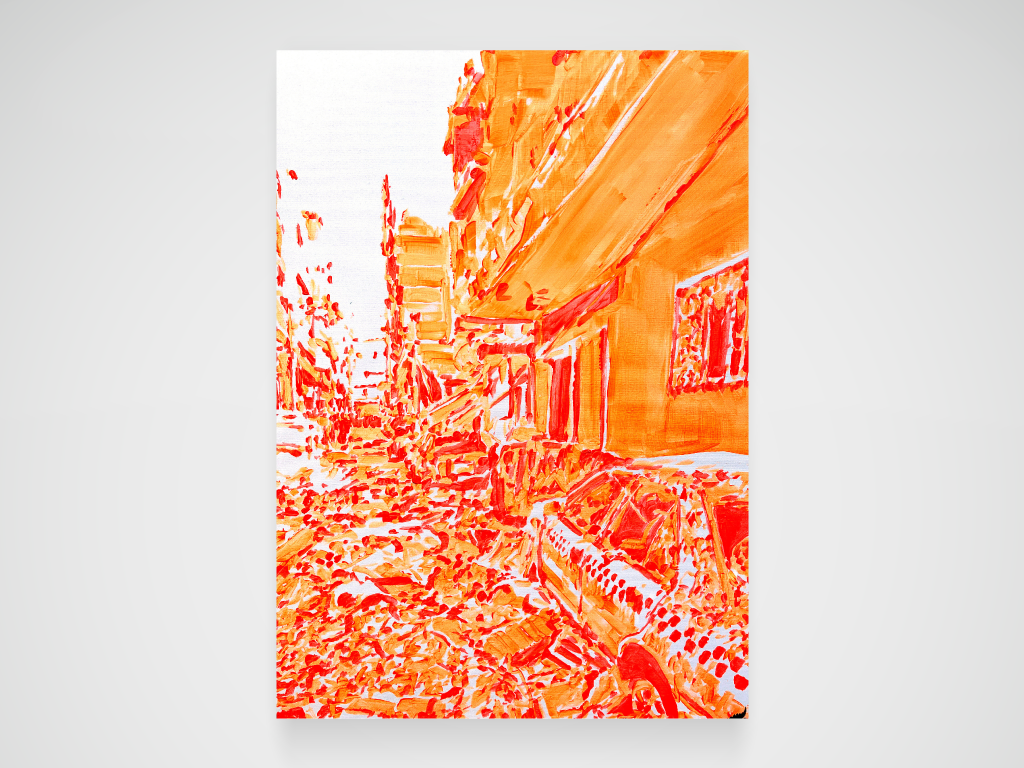 Gaza, Israël : guerre flash et flashy sans fin… Acrylique sur toile. 73 x 100 cm.