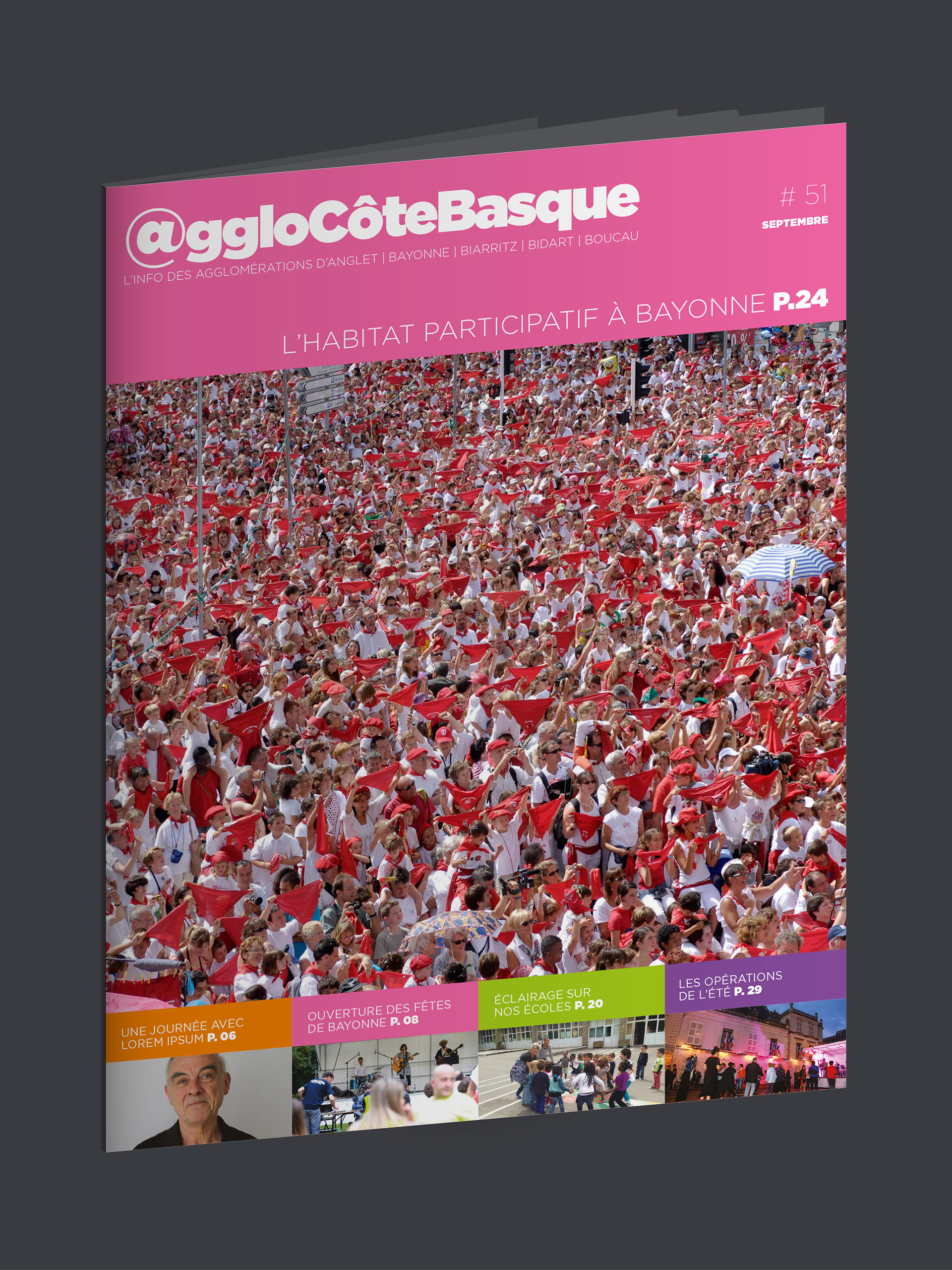 Le magazine de l'agglomération de la Côte Basque est un pari sur les couleurs vives et la typographie corporate "Gotham"…